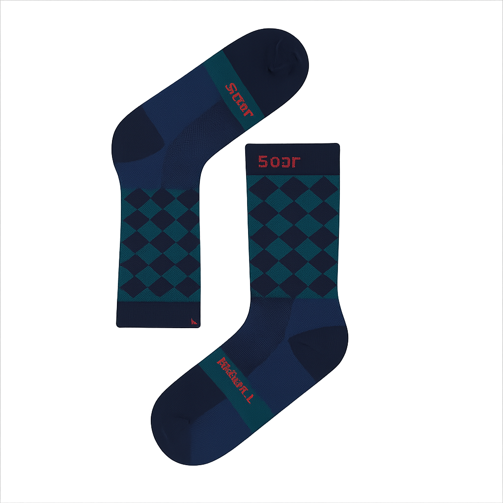 The mid-calf cuff is ribbed for structure, with terry padding cushioning high-impact zones. Reinforced heel and toe panels increase durability under load.